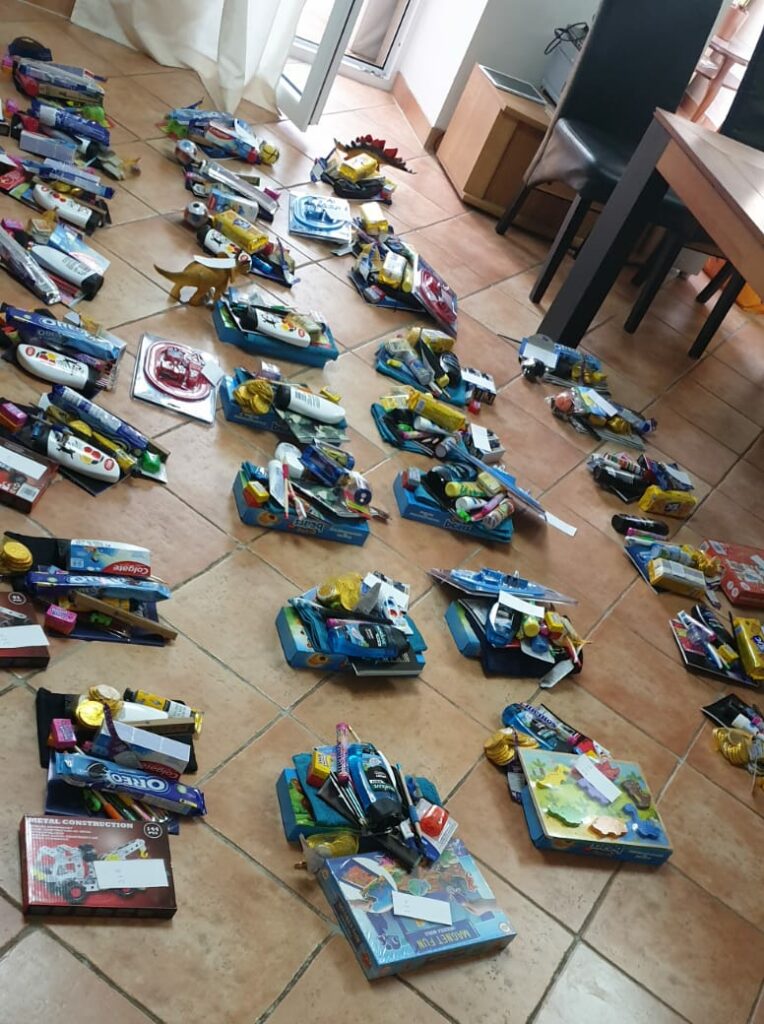 So schön: Die ersten Pakete trudeln bereits bei uns ein. Die Liste, wer für welches Kind packt füllt sich weiter und durch großzügige Spenden hat Nelly heute einiges gekauft und für weitere Pakete vorbereitet. Und dabei haben alle große Freude.