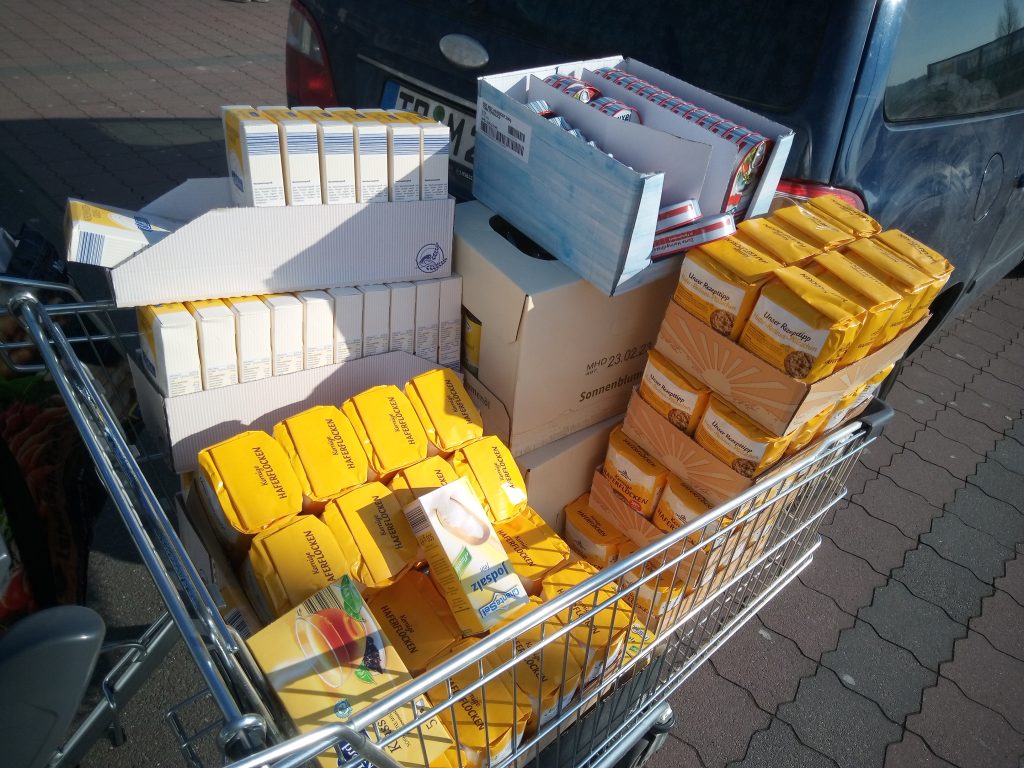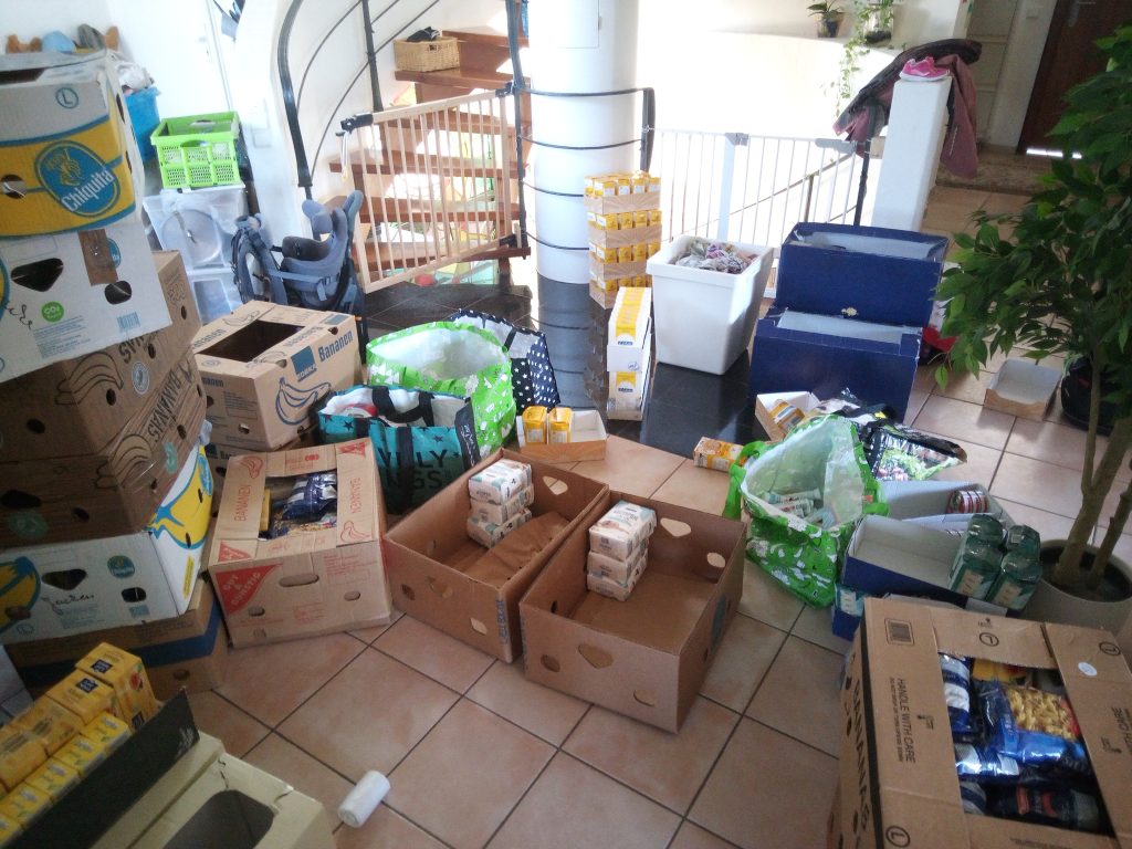 Auch wir wollten uns dem Packen von Lebensmittelpaketen für die Ukraine anschließen, sammelten Spenden und zogen los. Bananenkartons, unglaublich viele Lebensmittel und ein voller Flur beim Packen. 🙂 Insgesamt konnten wir etwa 20 Kartons packen und Nelly brachte sie zu einer Sammelstelle in Süddeutschland (DANKEEEE!!!!)
