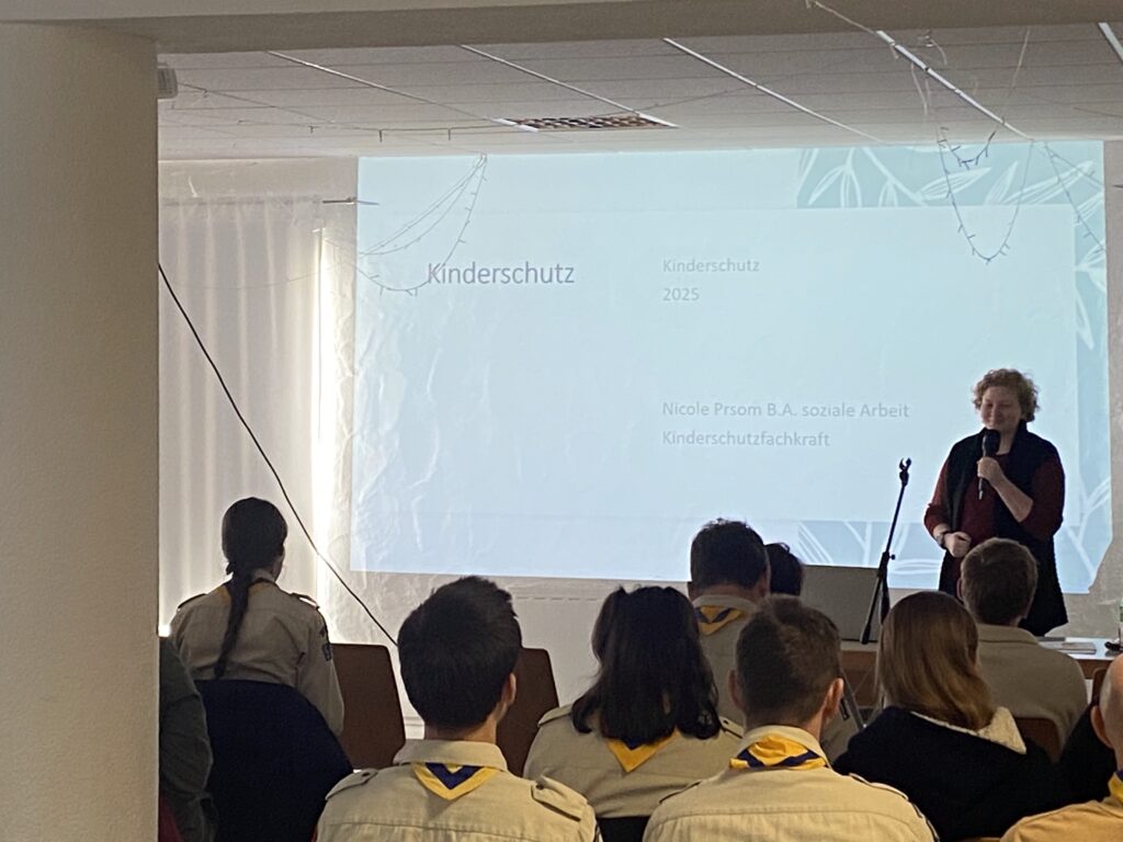 Die Kinderschutzfachkraft Nicole Prsom behandelte mit uns alle wichtigen Aspekte rund um das Thema, führte praktische Übungen mit uns durch und gab uns viele wertvolle Informationen an die Hand, mit denen wir die Sicherheit und das Wohl unserer Pfadfinderkinder und Jugendlichen bestmöglich gewährleisten können.