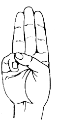So, wie beim Royal Rangers-Gruß der Daumen den kleinen Finger überdeckt, so möchten wir uns dazu verpflichten, dass der Größere den Kleineren achtet und schützt. Die drei Finger darüber symbolisieren Vater, Sohn und Heiligen Geist, die wachend über uns stehen.